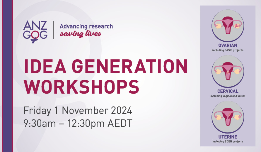 Early career researchers are particularly encouraged to bring their idea to the ANZGOG Ideas Generation Workshops. The Tumour Working Group will help you develop the idea at the October session and recommend a working party to work together with you to develop the idea further if required. More experienced researchers are welcome to bring their idea or a more fully developed concept to the workshops for discussion and fast tracking through to the Research Advisory Committee.